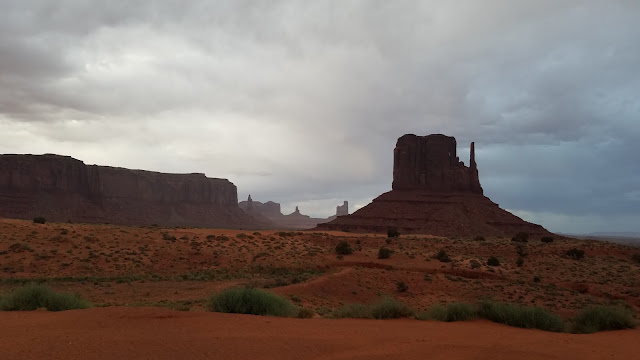 | And now we're on to Monument Valley, Arizona. That little ant-like figure on the left is Aidan. He's 6'3" or 6'4". On the right is "Mexican Hat". |